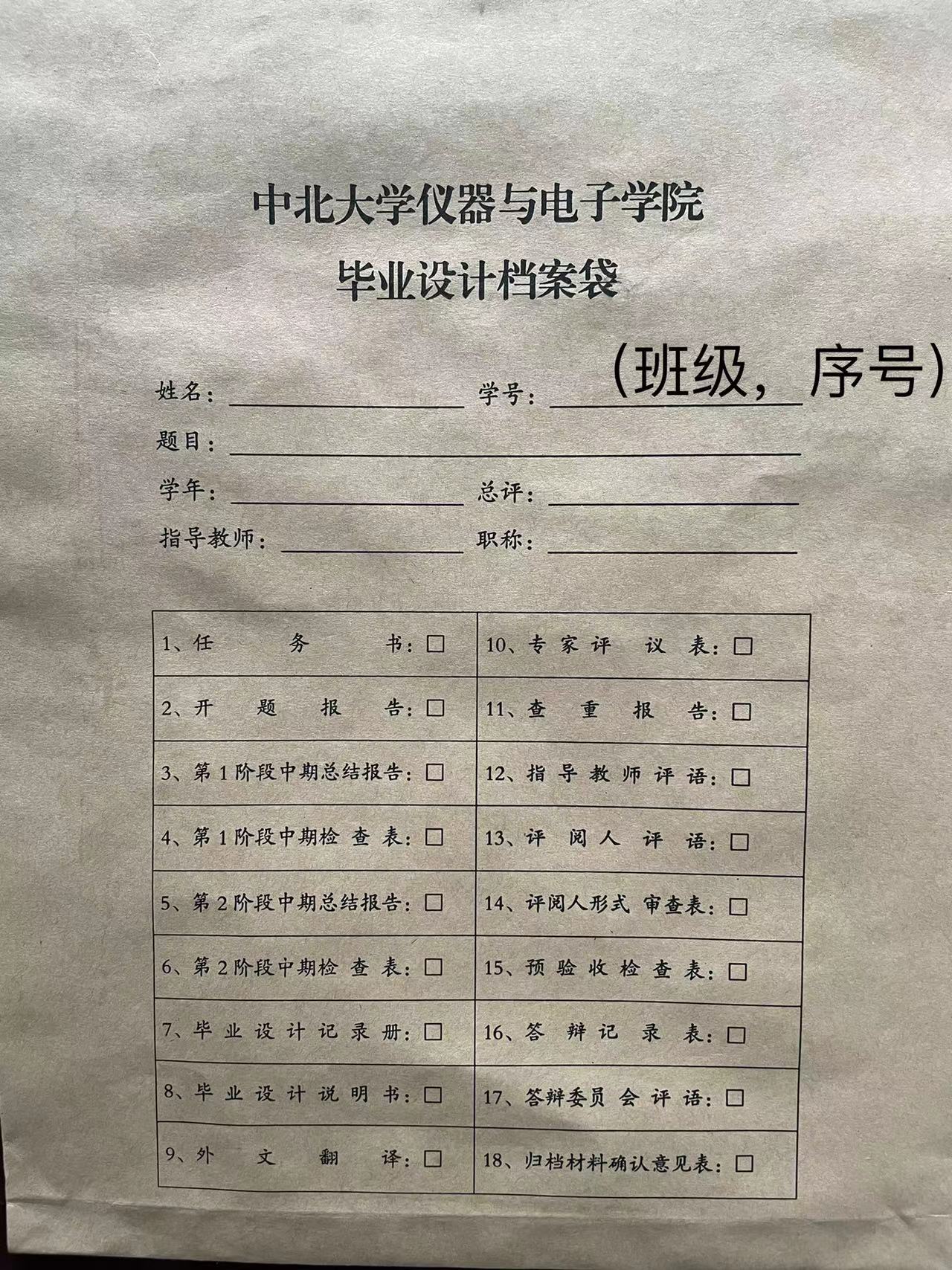 电子版命名规则:每个学生一个压缩包,班级汇总成大压缩包拷到主楼1212 压缩包:学生个人:学号+姓名+题目+五分制总评.rar(例:1606014314+王钰铜+智能平衡车姿态解算与控制系统设计制作+良.rar);